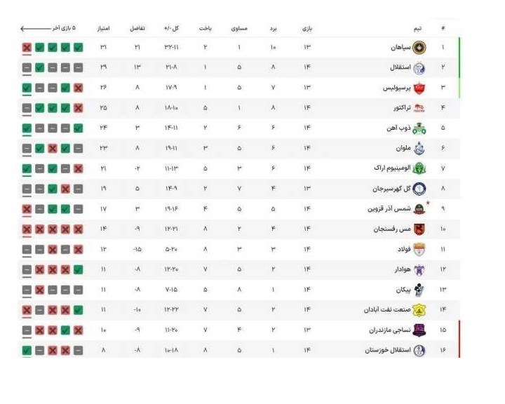 جدول لیگ برتر پس از بازگشت امتیازات را در ادامه مشاهده میکنید