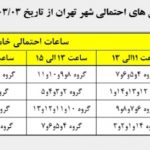زمانبندی قطع برق در مناطق مختلف تهران از ساعت ۸:۳۰ تا ۱۱
