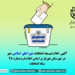 نتایح نهایی انتخابات شورای اسلامی در شهرستان شهریار- شهر صباشهر
